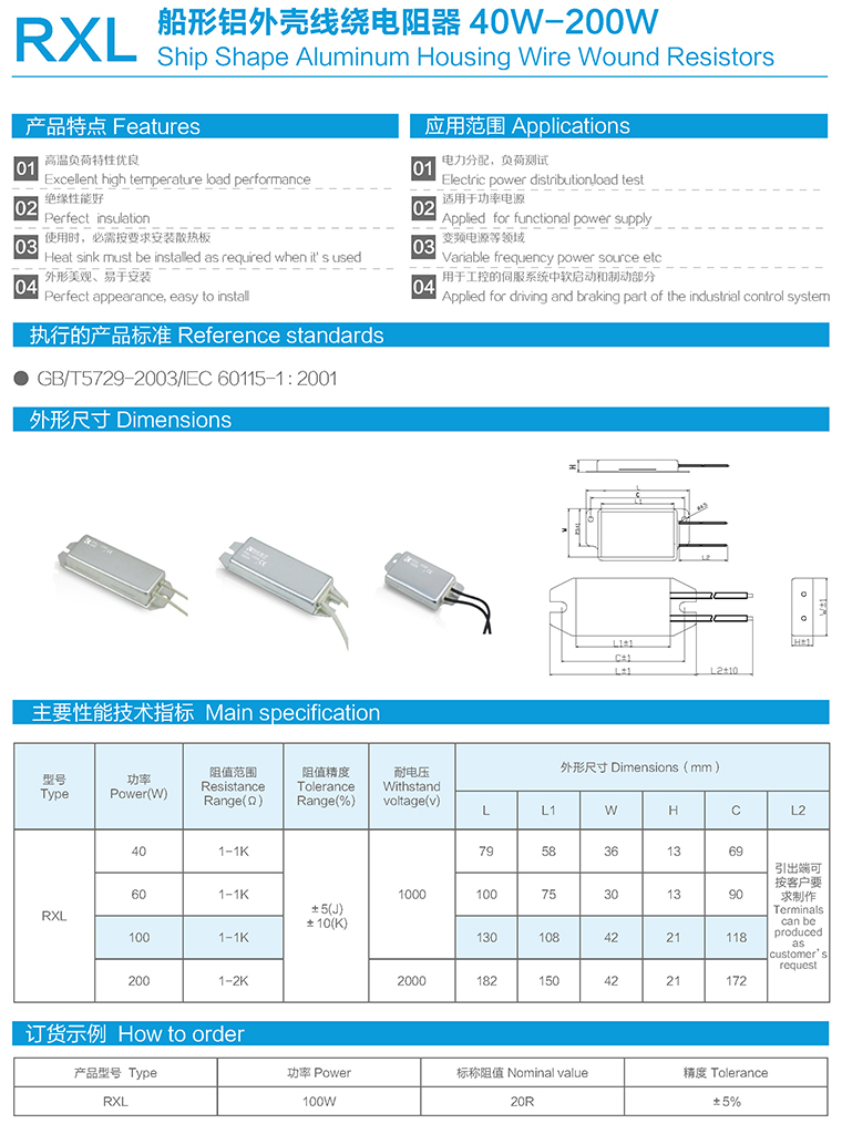 RXL型船形铝外壳线绕电阻器