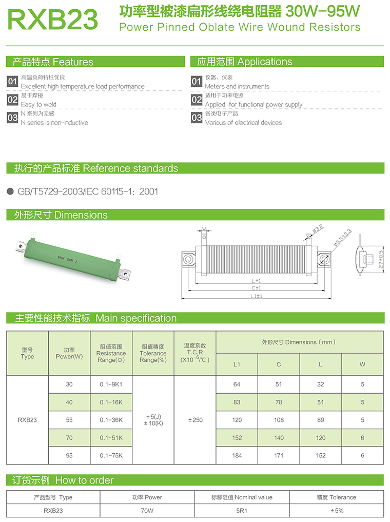 RXB23功率型被漆扁形线绕电阻器