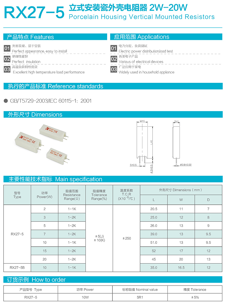 RX27-5型立式安装瓷外壳电阻器